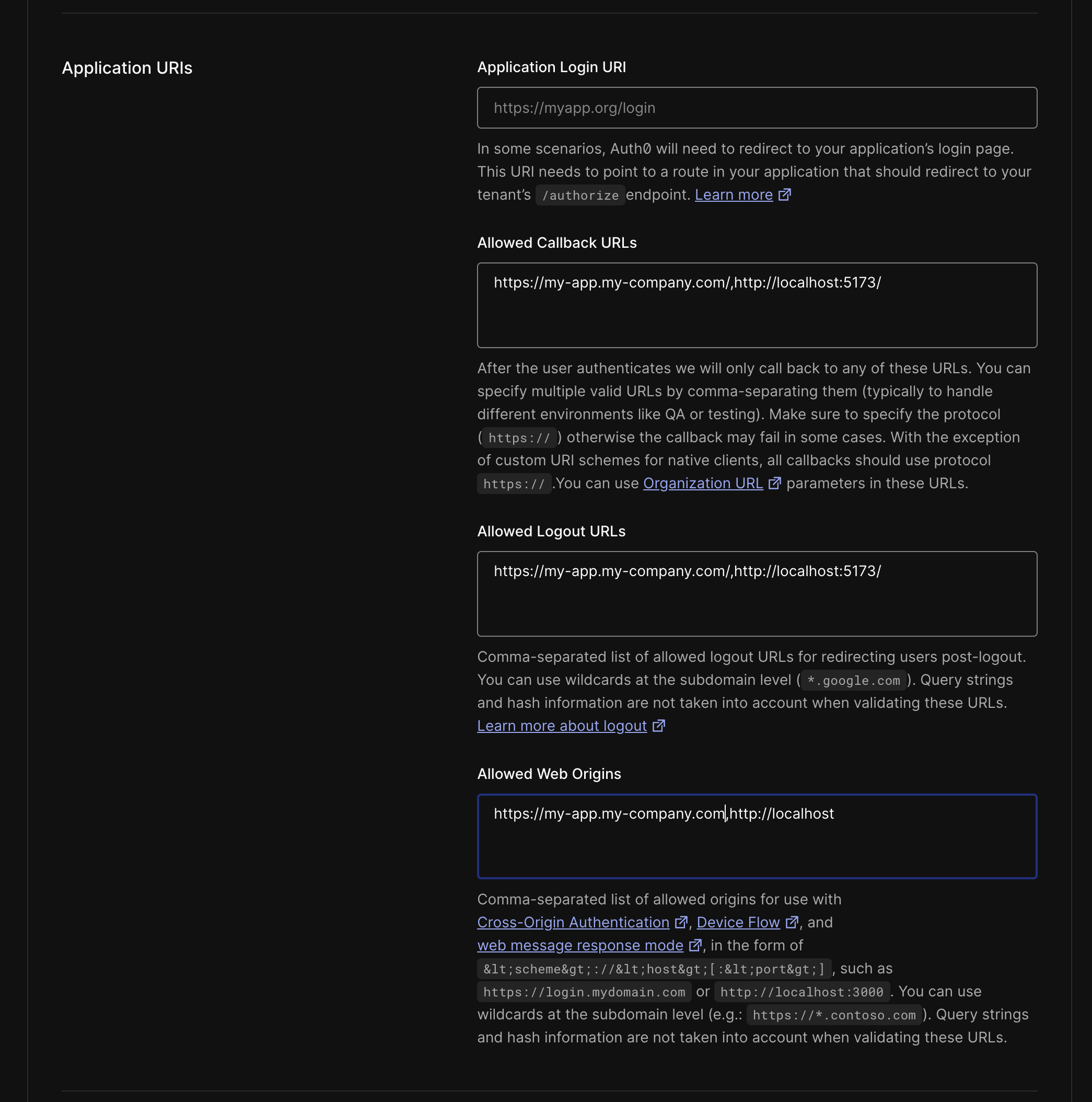 Allowed Web Origins: The origins of the Callback URLs