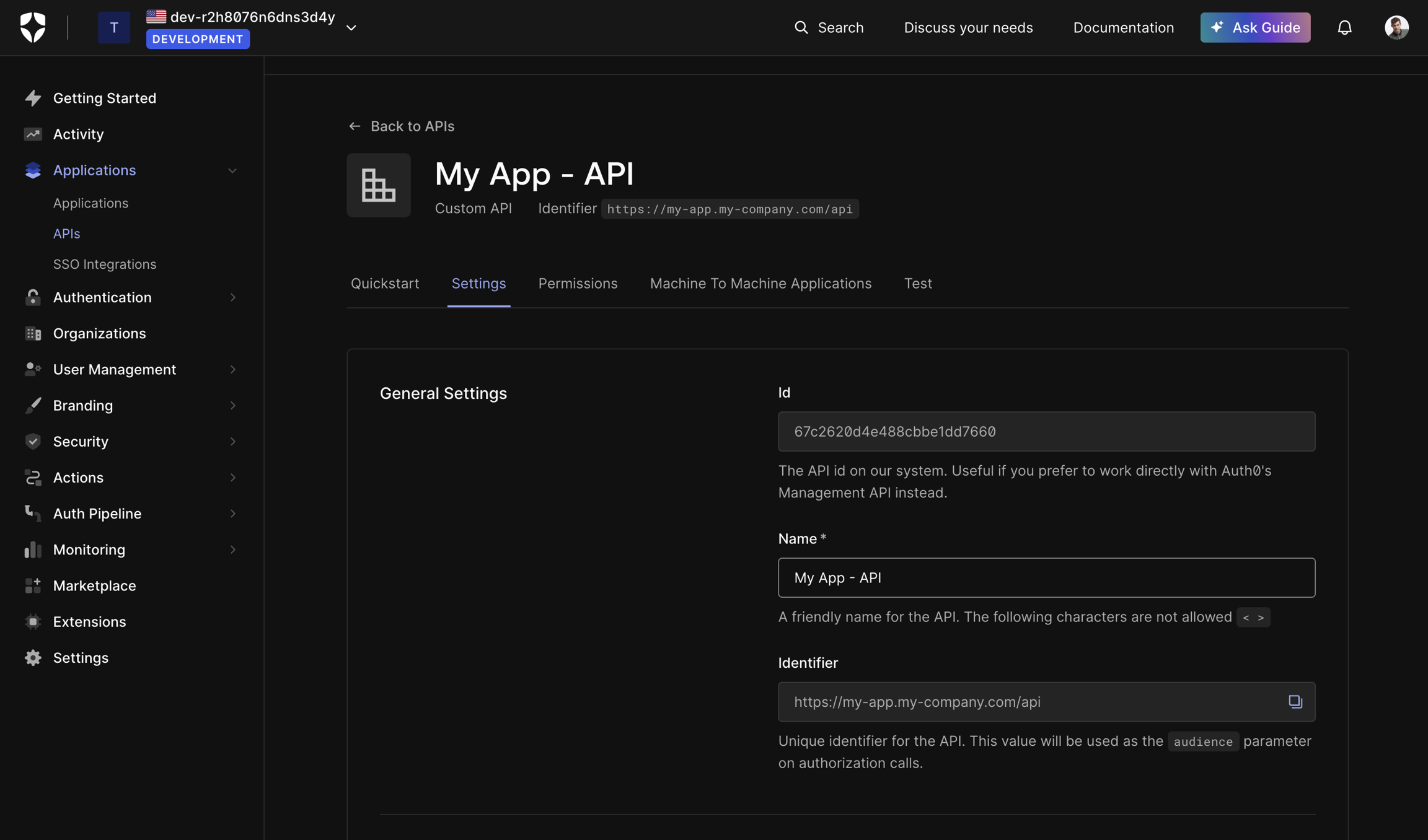 https://myapp.my-company.com/api). However, this is just an identifier, so any unique string works. It will be the aud claim of the access tokens issued. See the web API page for more info.Click Save.